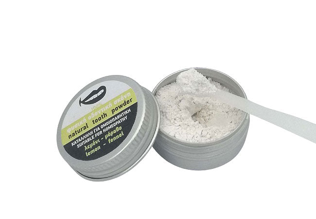 Fennel and lemon tooth powder offers excellent oral hygiene, as it deeply disinfects teeth and gums, protects against tooth decay and at the same time gives pleasant and fresh breath. It contains bentonite clay, which disinfects and removes heavy metals and toxins, calcium carbonate that acts as a mild abrasive, helps remove stains and dental plaque, fennel that effectively treats bad breath and lemon that acts antiseptically and hemostatically. Suitable for homeopathic treatment, and can also be safely used by children, as it does not contain fluoride, synthetic chemicals, artificial colors and fragrances. Use: moisten the toothbrush, dip it in the powder and brush normally. The use of the same package by several people is completely safe. It is accompanied by a silicone measuring spoon.